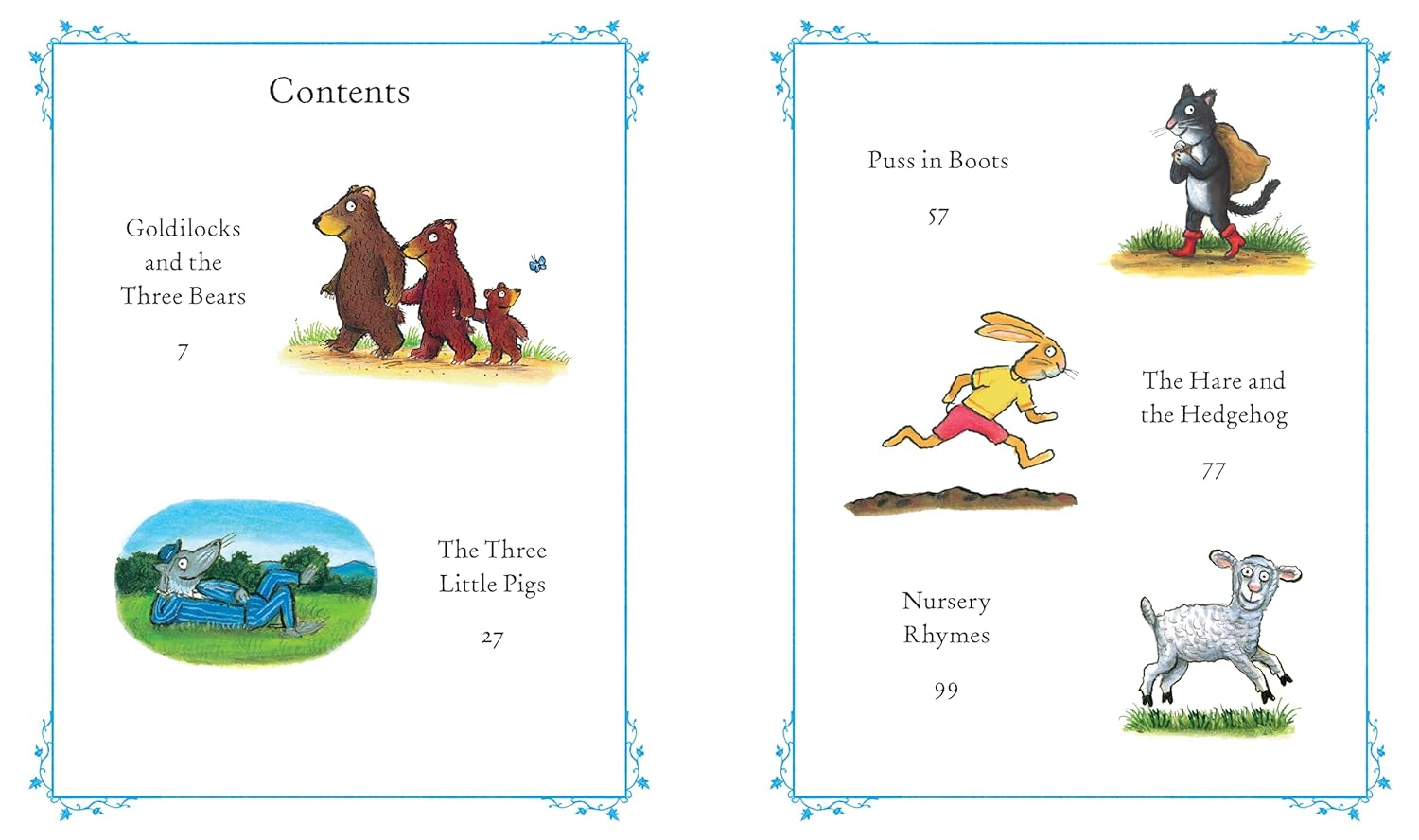 A gorgeous gift book of classic fairy tales, beautifully illustratedby bestselling and award-winning illustrator, Axel Scheffler. Featuring Goldiocks and the Three Bears, The Three Little Pigs,The Hare and the Hedgehog, Puss in Boots and Nursery Rhymes, allbound into one must-have collection.