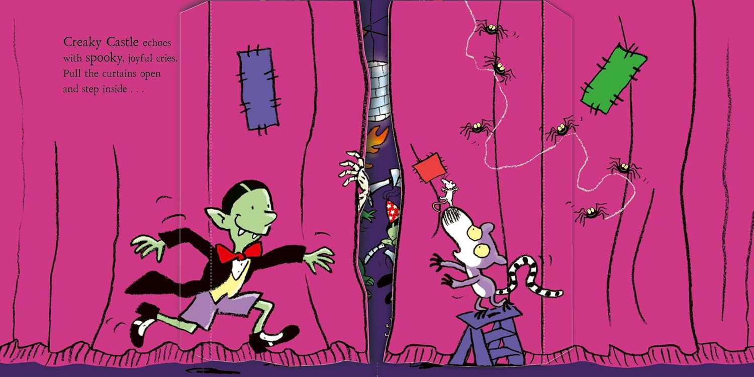 Discover a host of spooky characters as you lift the flaps in each ghostly room of the Creaky Castle. There are skeletons in the cellar, werewolves in the shower, and a vampire hiding in the clothes chest. And they are all getting ready for some bone-shaking fun at the Creaky Castle party.
