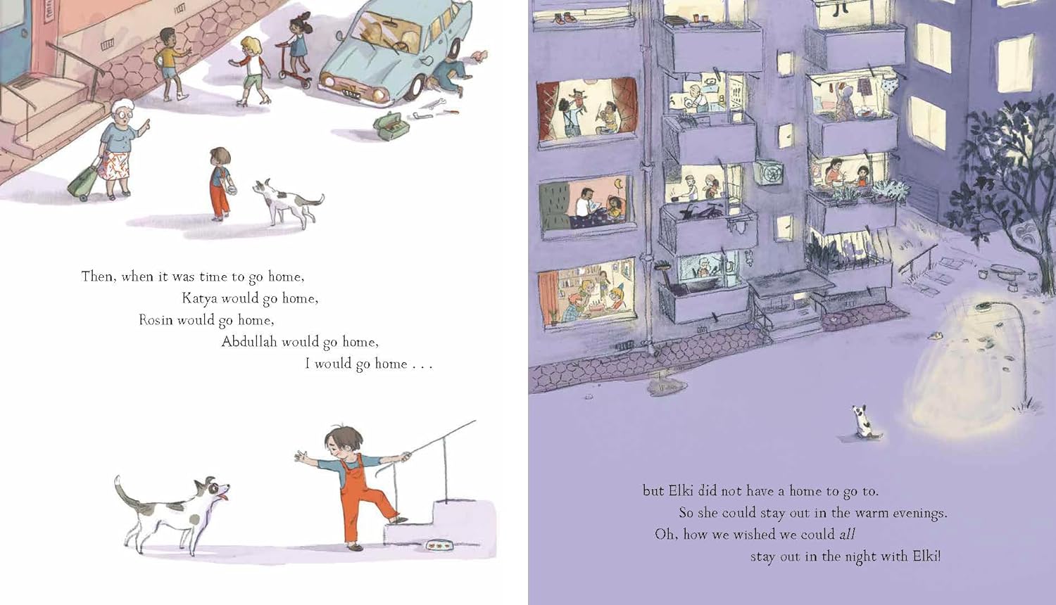 When a small group of children befriend a stray dog, the entire community is inspired to become involved. Elki does not have a home - she is a stray dog who finds kindness in the company of a little group of children. They play together during the day, but Elki must stay alone outside every night because dogs are not allowed in their block of flats. One day Elki disappears and is found injured. Who will look after her and how? Written by an award-winning picture book creator.