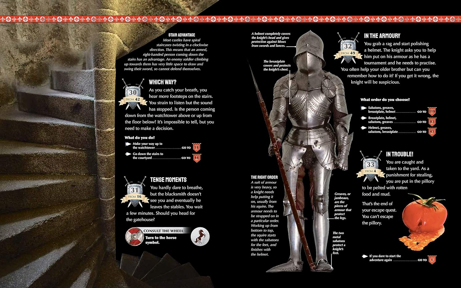 But it is also a mighty fortress fiercely defended by soldiers. The castle's massive walls protect it from enemy attack, while inside there is a maze of dark passageways. Stay calm, use your wits and consult the heraldic wheel on the front cover.