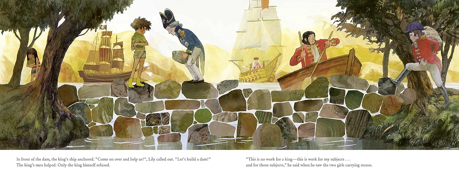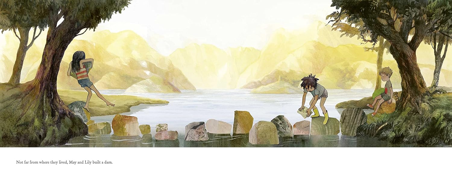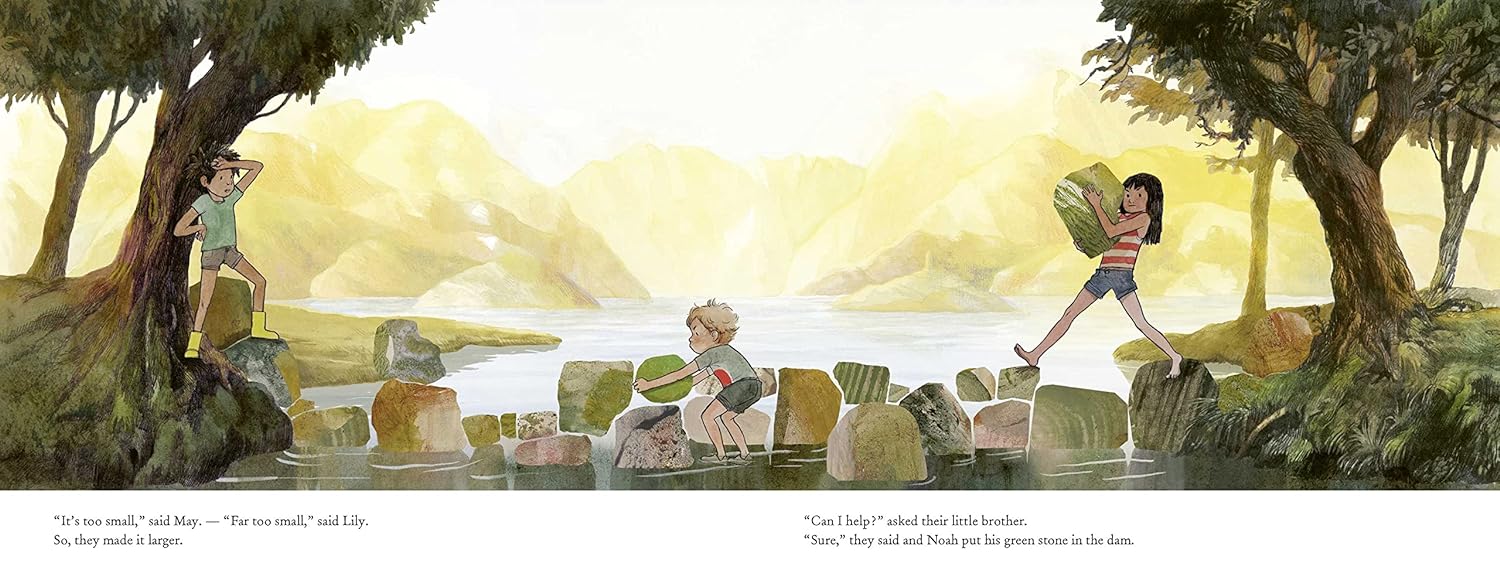 Siblings May, Lily, and Noah build a dam. Stone by stone, their dam grows higher and higher, until their creation attracts the attention of fishermen, pirates, and even the King and his fleet. The sky's the limit, until Noah wants his stone back . . .