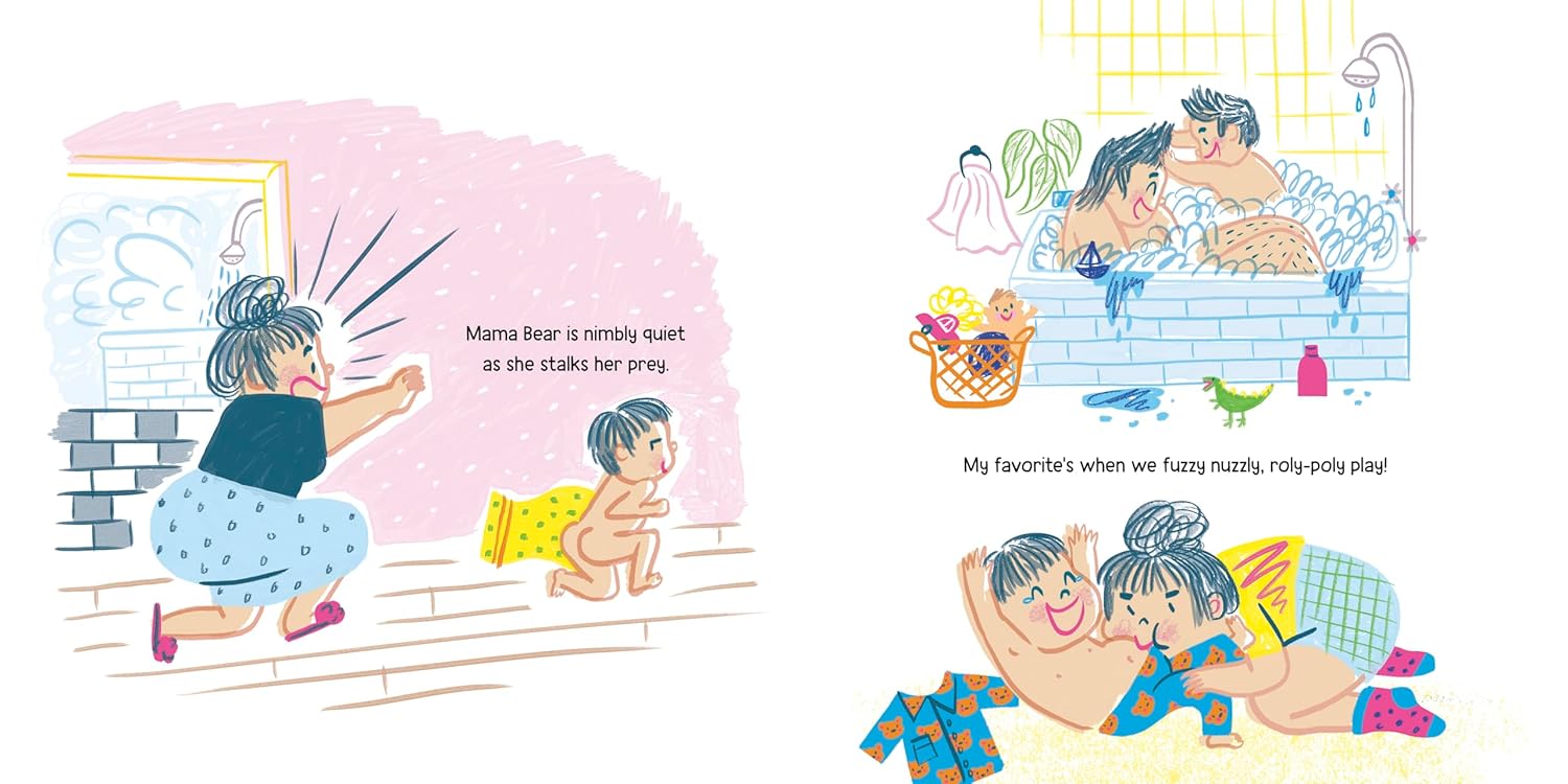 A bear hug from my mama is the warmest place to be. . . . This rhyming board book follows a day in the life of a child and their loving mama bear, from a honey-filled breakfast, to tumbling with their friends at preschool while mama bear "hunts" at work, to bedtime in their warm, cozy den of blankets. With bear-y funny metaphors and tender moments sprinkled throughout, My Mama Bear and Me is an empowering ode to anyone who is or has a protective mama bear figure in their life.