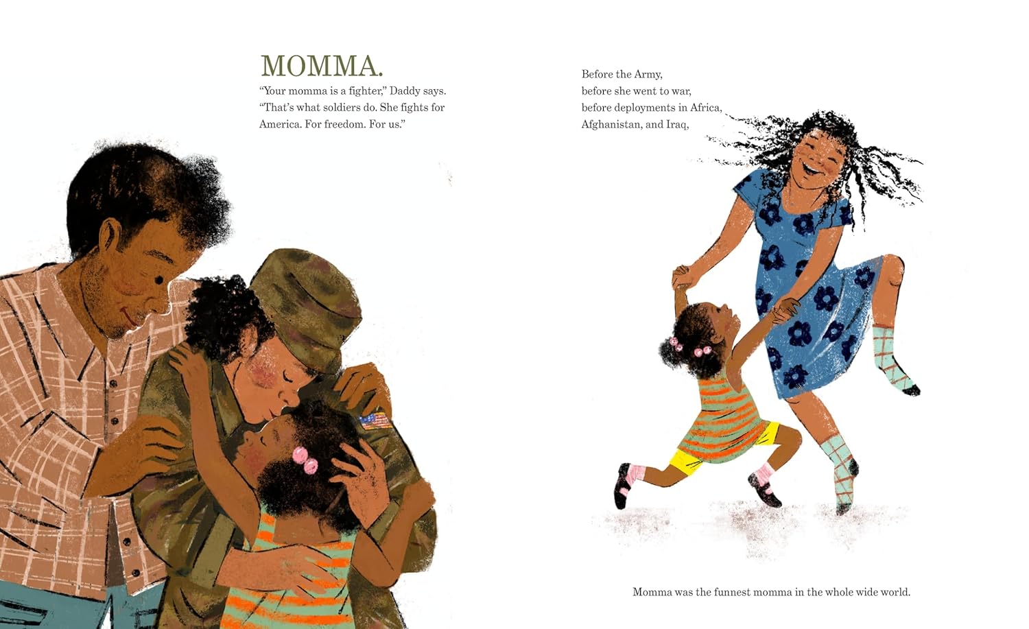 Momma wears combat boots, a camouflage jacket, and a U.S. ARMY tag on her chest. She is a fighter for her country’s freedom, but she is also a fighter for her family. When Momma comes home from a long deployment, however, something has changed. Our narrator, Momma’s “Baby," misses the big hugs, uniform fashion shows, and music mornings they used to share. And she really misses planting vegetables together. Now her Momma won’t even come out to the garden. But maybe, just maybe, she can bring the garden to Momma.