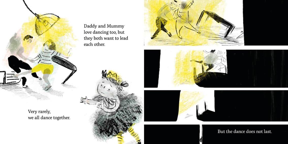 A young girl loves to dance, especially when Daddy and Mummy dance with her, but these dances don't last long. One evening Daddy leaves home and Mummy explains that they are separating. During the week the young girl lives with Mummy and on Saturdays she visits Daddy at a contact centre. The family now have two new dances, each one different but both as valuable as the other.