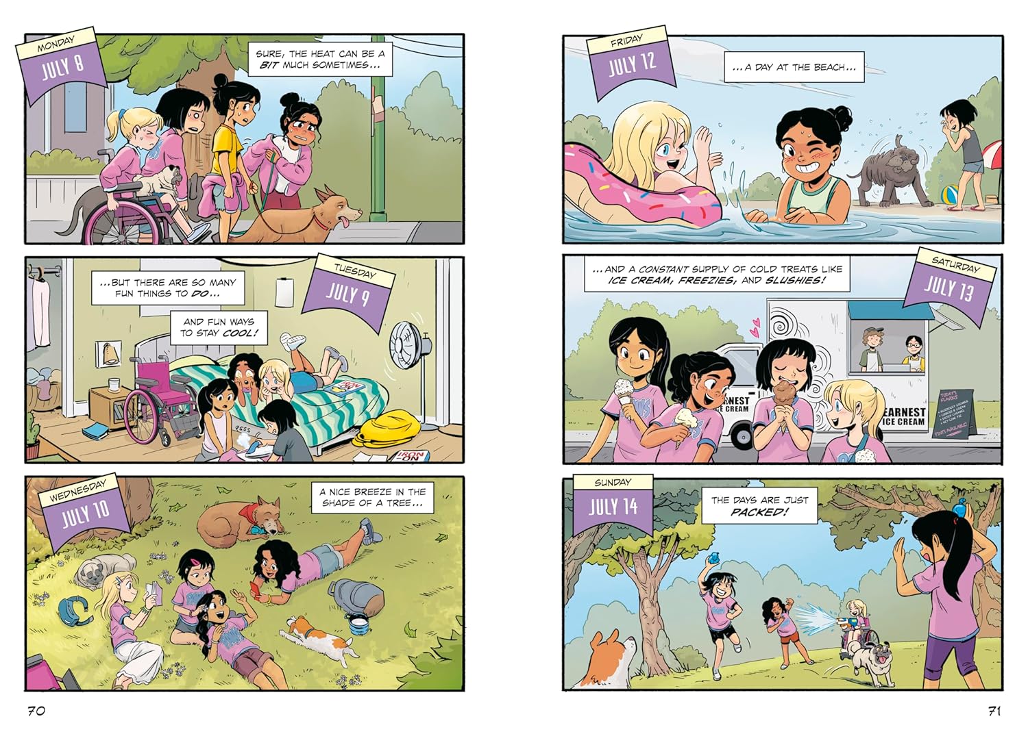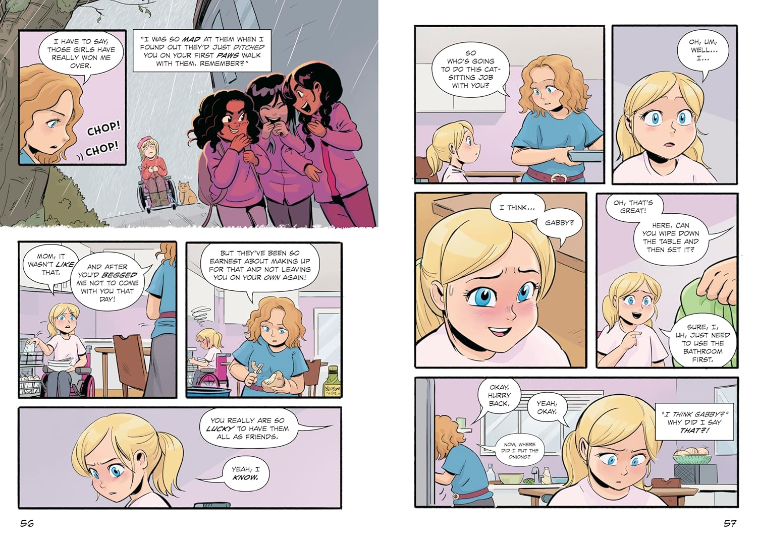 More heartwarming and humorous adventures await in the fourth book of this graphic novel series that is the Baby-Sitters Club for pets! Summer break is just around the corner, and the PAWS team is gearing up for a busy season full of dog-walking, travel, and fun! Gabby’s got a packed schedule with about a hundred different camps plus playing host to her mysterious cousin visiting from out of town. Meanwhile Mindy is headed to her dad’s house for a month-long stay. With so much going on, the girls are looking forward to scaling back and taking it easy this summer. . . with one exception. When the opportunity to cat-sit two new fur babies arises, Hazel jumps at the chance. Their new client’s house is even wheelchair accessible! But when everyone’s hectic summer plans mean she would have to take on the job alone, Hazel knows her overprotective mother would never approve. On the other hand, managing a side business all on her own could prove that she is much more capable than her mom might think… Hazel soon learns that juggling multiple cats and dogs along with her own physical therapy—while also keeping a big secret—is no easy task. When disaster strikes, will she have the energy to make everything right by herself, or will she be forced to reach out for help and risk getting into even more trouble?