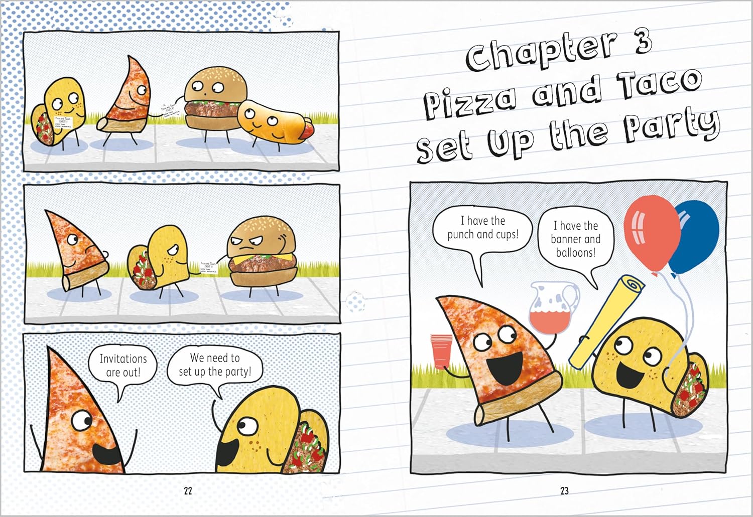 Pizza and Taco are going to have the BEST PARTY EVER! They have a location, and a guest list, and decorations. Everything is perfect!