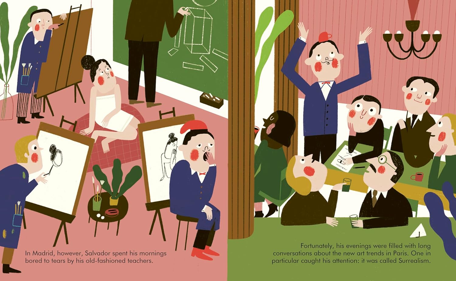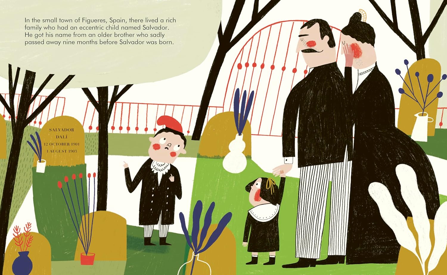 Little Salvador was born in Figueres, Spain, in the shadow of the death of his elder brother. In his teenage years, he was introduced to Cubism and Surrealism, which had a profound effect on his life. After an education in fine art, he began a career as an artist. Many people doubted Salvador and found him and his work to be too eccentric, but he proved his doubters wrong by creating some of the most iconic and enduring artworks to have ever graced the world. Salvador's life inspires generations of little creators to follow their own style.