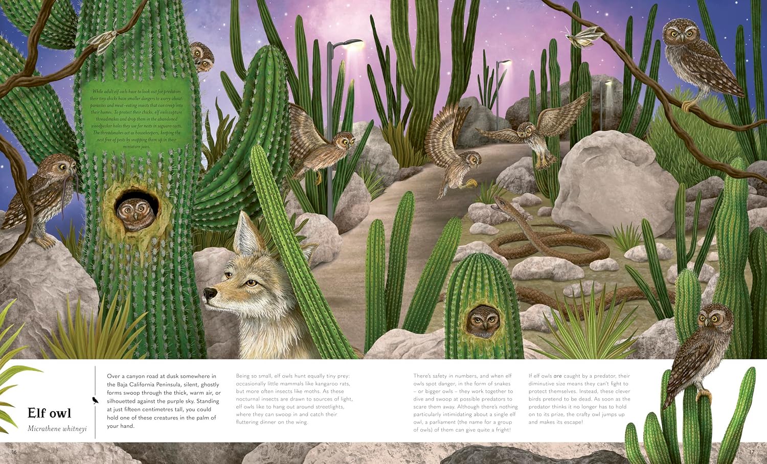 Within each chapter, you meet five teeny animals from around the world. Each animal is introduced over a fully illustrated spread. Prepare to be welcomed to the little animal’s life, introduced to its habitat, and walked through the creature’s habits and how it navigates its world – with special emphasis on its size, and the benefits and challenges that come with it.