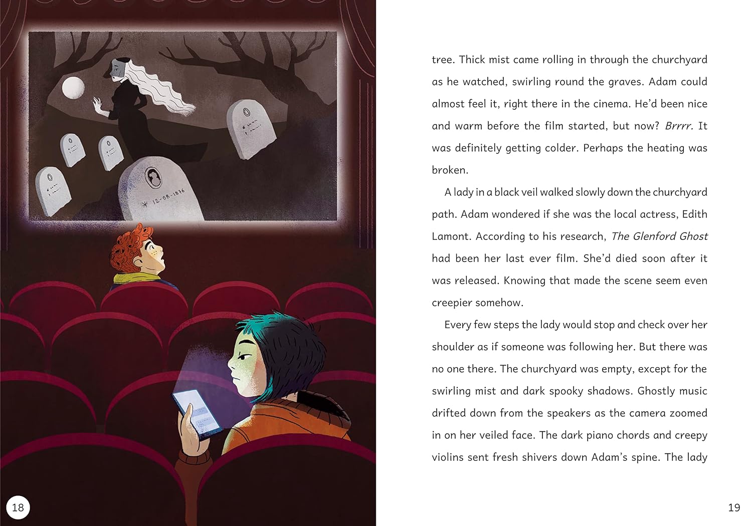 Adam loves the tatty old film house where his grandma works. Unfortunately the lack of other customers means it’s going to be knocked down and turned into a car park... During a final film showing of a spooky old black-and-white film, Adam's popcorn starts flying around and Lin, the manager's daughter, lets out a scream as something cold and whispery brushes against her ear. Could the cinema be haunted? And if so, could this be a spine-chilling way to bring the old film house back to life?
