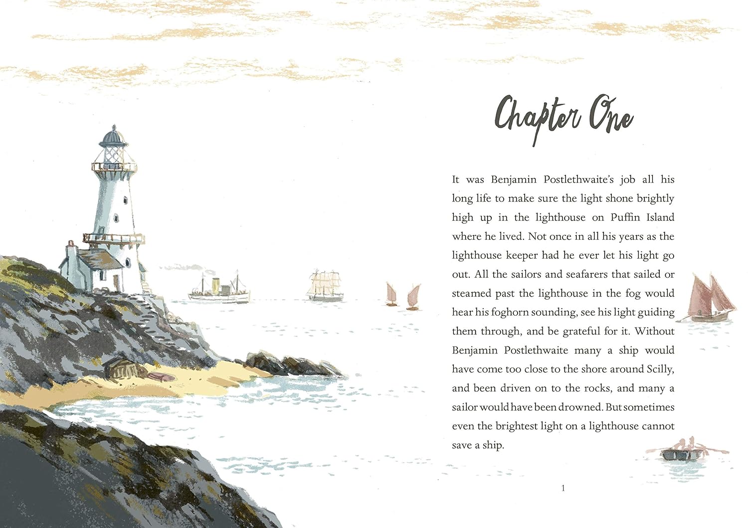 It was Benjamin Postlethwaite's job all his long life to make sure the light shone brightly high up in the lighthouse on Puffin Island. Not once in all his years as the lighthouse keeper had he ever let his light go out. But sometimes even the brightest light on a lighthouse cannot save a ship.