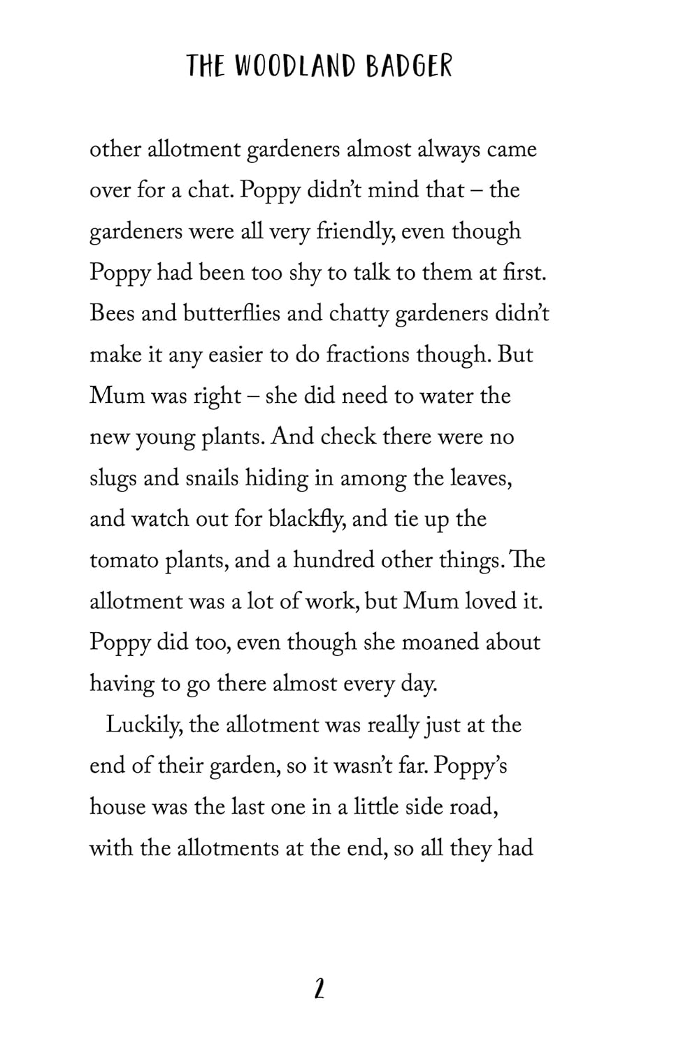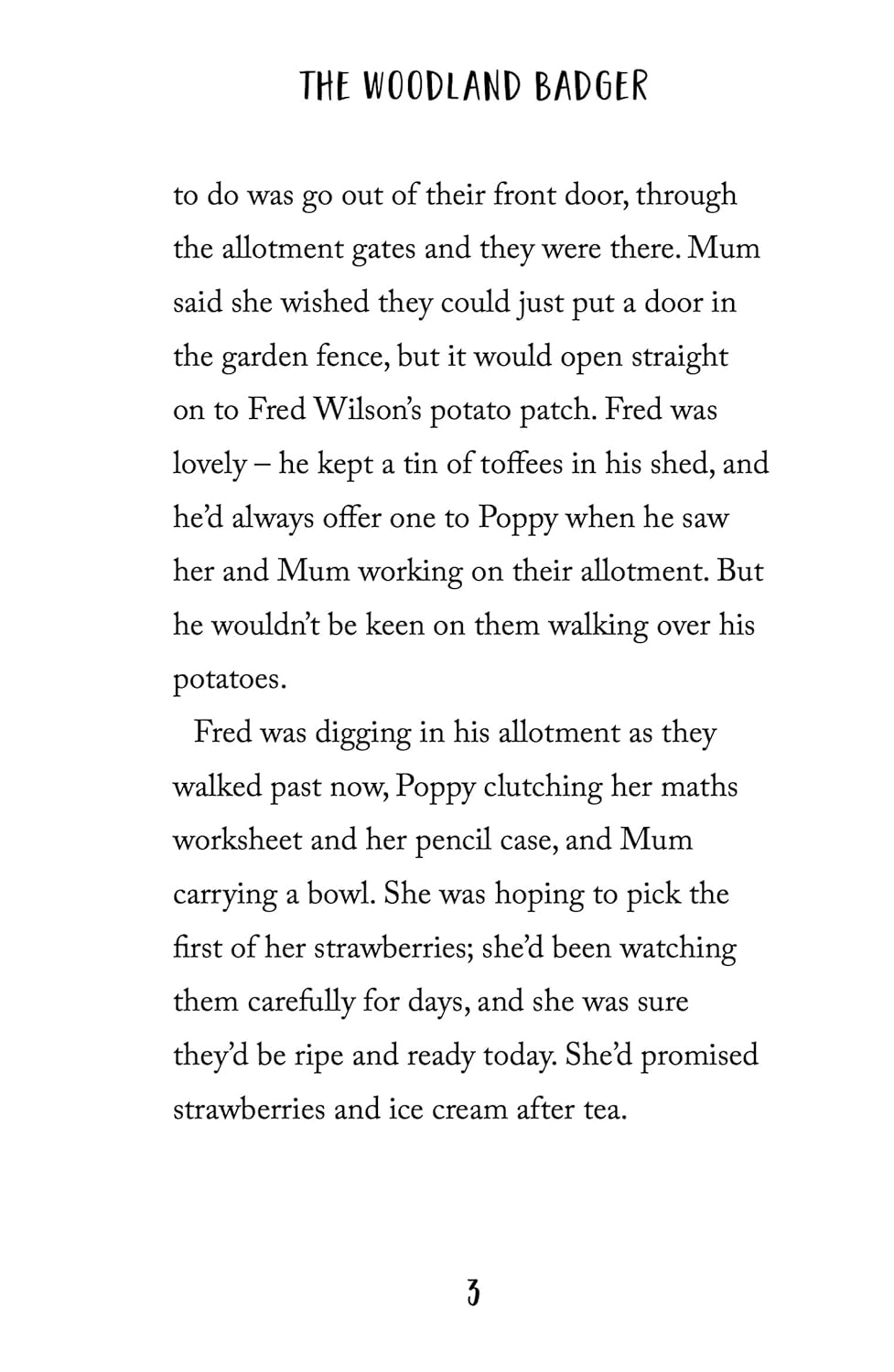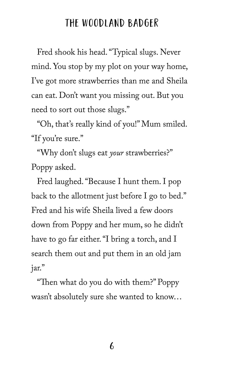 Poppy loves spending time at her mum's allotment and the tangle of wild woodland behind it. They regularly see foxes and hedgehogs, but one special evening, just as they are about to head home, they spot a young badger. It's the first time Poppy has ever seen one in real life, and she's entranced.