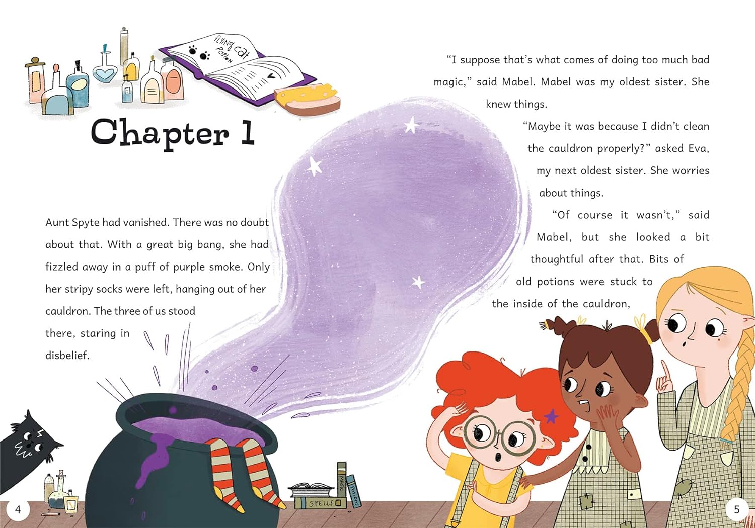 Clemmy, Mabel and Eva are three sisters who live their Aunt Spyte, an evil witch. That is, until one of Aunt Spyte’s terrible spells goes wrong and she vanishes. Poof! Can Clemmy, Mabel and Eva find a new, better way to live that doesn’t involve bad magic? Or will they resort to Aunt Spyte’s old potions to get them through?