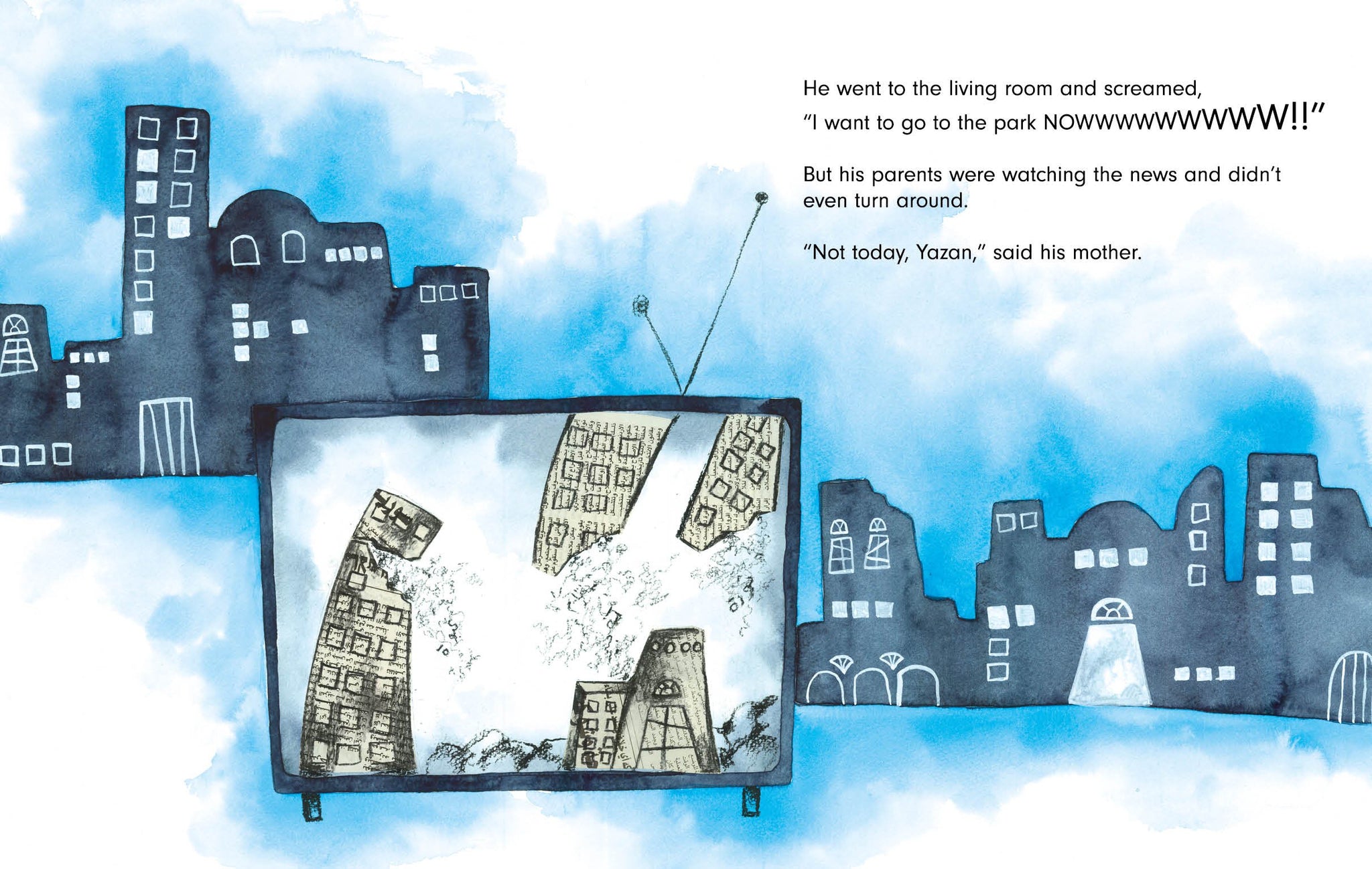 Yazan no longer goes to the park to play, and he no longer sees his friend who lives next door. Everything around him is changing. Will he ever be able to go outside and play? An uplifting story about a courageous little boy growing up in a time of conflict, and the strength of family love.