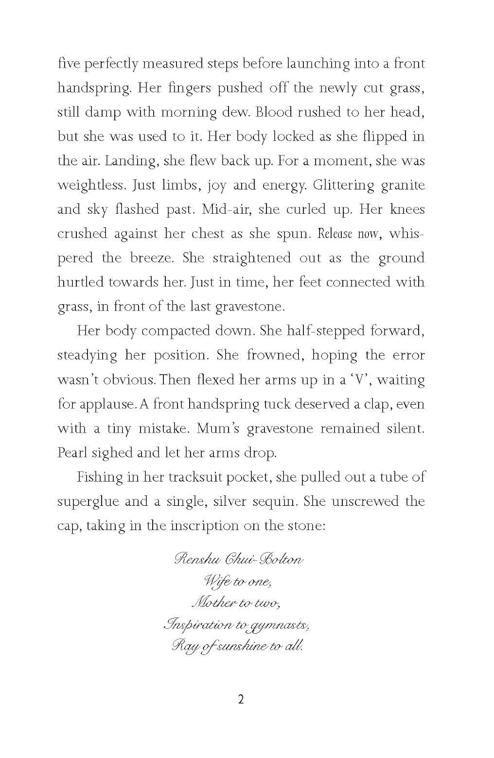 Pearl is a young gymnast hoping to be selected for the World Cupin Paris. With best friend Ryan, and champion Jada-Rae, she's facingher fears. But when sporting success is on the line, how farwill they go to win? Is friendship for losers?