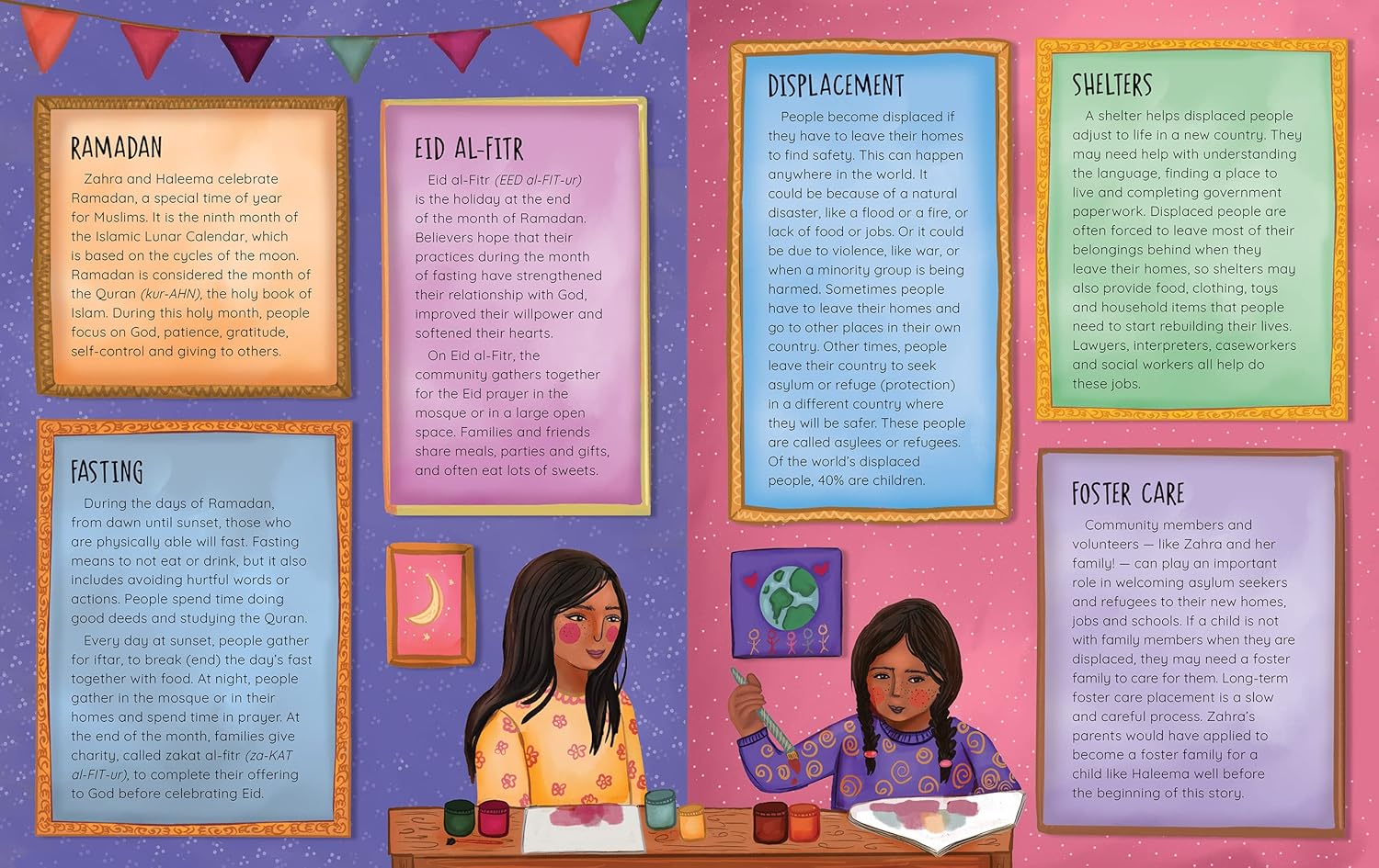 Zahra hugs her cherished teddy bear and prays that Ramadan will bring her a longed-for sister. When her bear subsequently goes missing, Zahra finds herself grappling with intense feelings of loss. Over the next few weeks, as she volunteers with her mother at a local shelter for asylum seekers, Zahra befriends a displaced child, resulting in a newfound sense of gratitude and an unexpected Ramadan blessing.