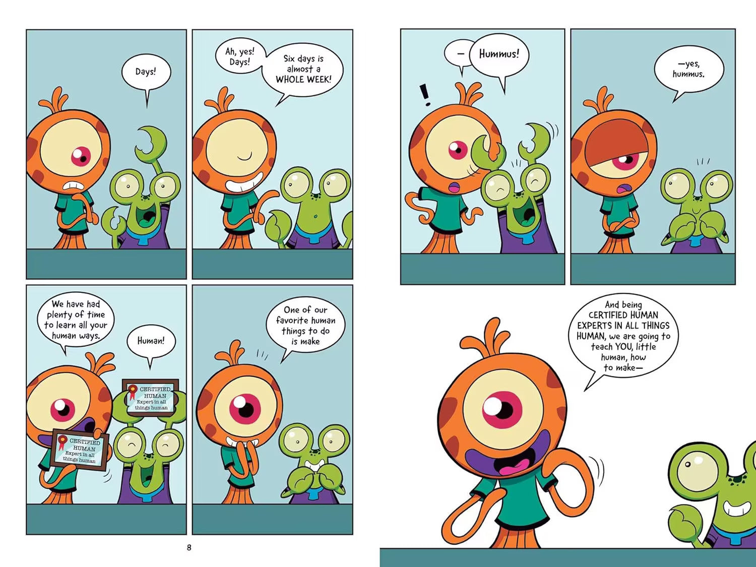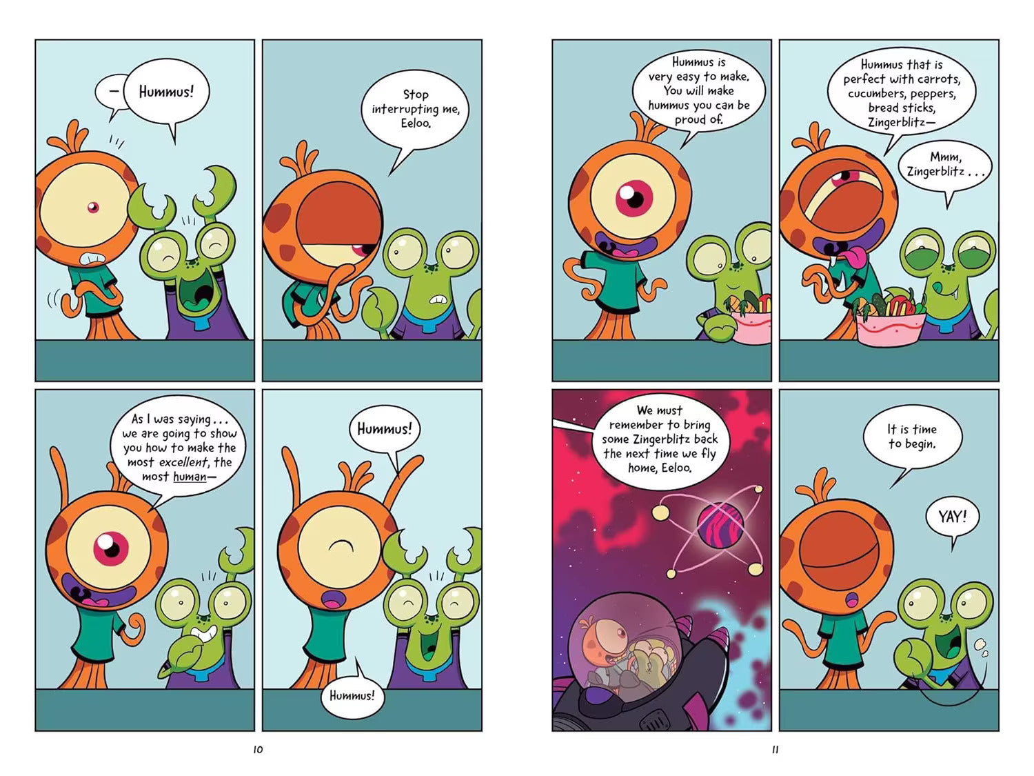 Zips and Eeloo are two aliens who think they are experts in all things human, like making hummus! But they aren’t exactly the experts they claim to be. Will Zips and Eeloo have hummus after all, or just one big, mushy mess? This graphic novel is great for readers who are just beginning their graphic novel journey!